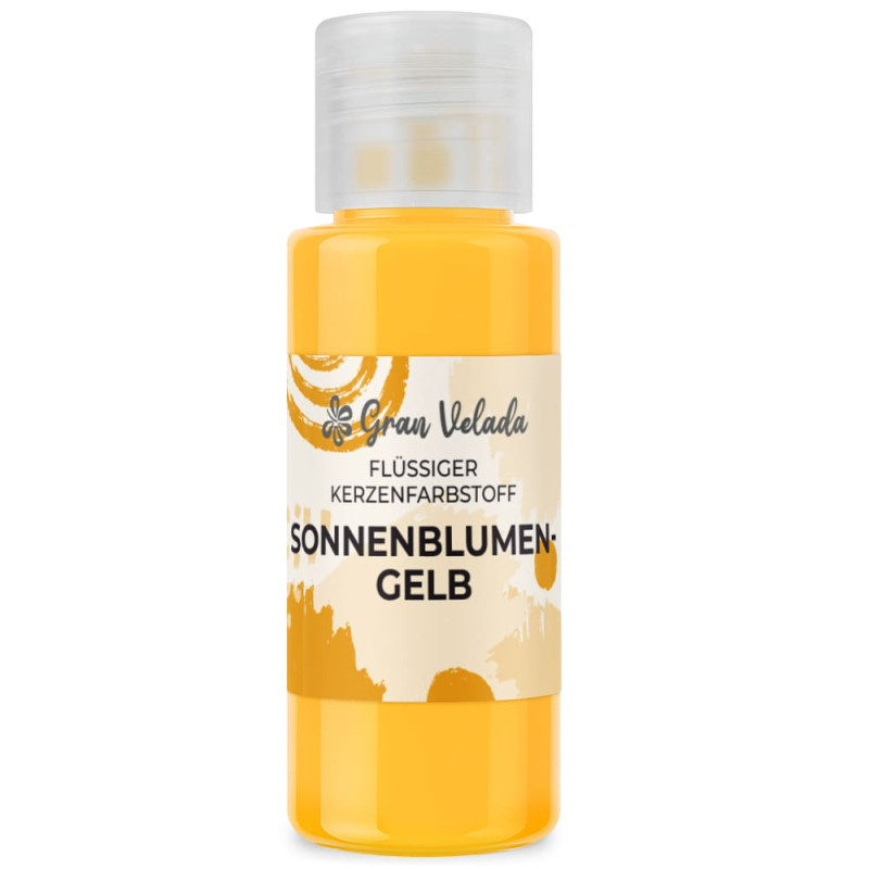 Sonnenblumengelbe flüssige Kerzenfarbe, erhältlich in verschiedenen Formaten. Flüssige Kerzenfarben sind bequem und praktisch, weil sie sehr einfach zu verwenden sind: Man gibt einfach ein paar Tropfen in aufgelöstes Paraffin und erhält die gewünschte Farbe. Da sie konzentriert sind, sind sie sehr preiswert in der Anwendung. Außerdem lassen sie sich leicht verteilen und hinterlassen keine Klumpen. Du erhältst farbige Kerzen, die Freude und Licht ausstrahlen.