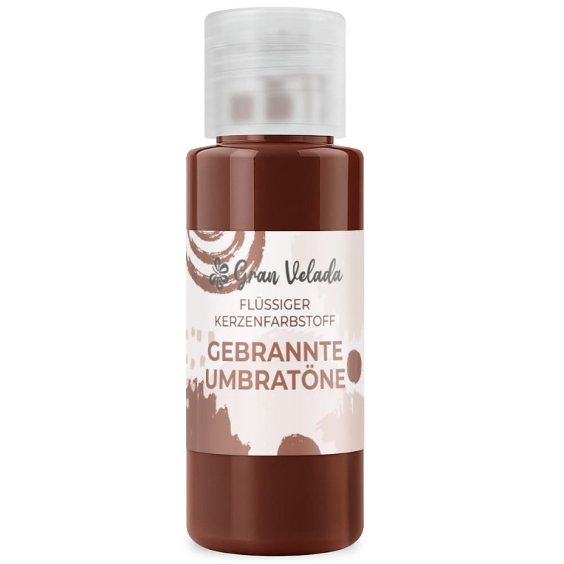 Flüssige gebranntes Umbra Kerzenfarbe, erhältlich in verschiedenen Formaten. Flüssige Kerzenfarben sind bequem und praktisch, weil sie sehr einfach zu verwenden sind: Man gibt einfach ein paar Tropfen in aufgelöstes Paraffin und erhält die gewünschte Farbe. Da sie konzentriert sind, sind sie sehr preiswert in der Anwendung. Außerdem lassen sie sich leicht verteilen und hinterlassen keine Klumpen. Du erhältst farbige Kerzen, die Freude und Licht ausstrahlen.