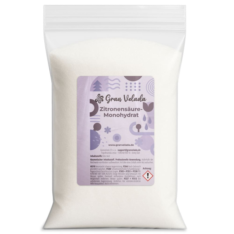 Es ist ein weißes kristallines Pulver von zertifizierter Qualität und großer Reinheit. Die Zitronensäure, die Sie in Gran Velada kaufen können, hat kosmetische Qualität und wird als pH-Regulator von Cremes, Gelen, Shampoos oder Seifen sowie als Konservierungsmittel verwendet.