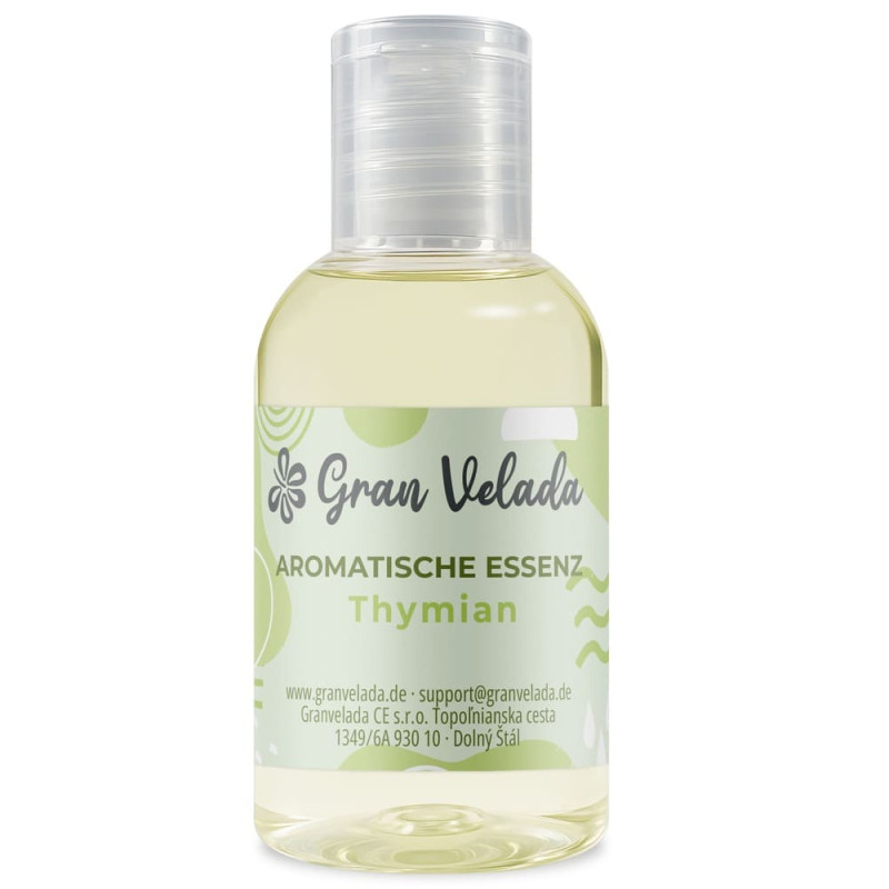 In Gran Velada können Sie Thymianessenz kaufen , um Ihre hausgemachten Ausarbeitungen zu würzen. Es wird online in verschiedenen Formaten ab 50 ml verkauft. In unserem Online-Shop finden Sie nicht nur Thymianessenz, sondern wir stellen Ihnen eine Vielzahl von Aromen zur Verfügung, fruchtig, süß, Zitrusfrüchte, blumig ... Wir haben mehr als 300 Aromen.