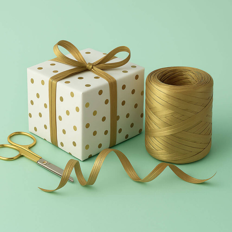 Goldmetallisches Bastband, um Ihre Geschenke, Gästedetails, handgefertigte Ausarbeitungen, Floristen und alles, was Sie sich vorstellen können, zu dekorieren und zu personalisieren. Dieses goldene Bastband ist ideal für die Herstellung von Schleifen und die Dekoration von Gästedetails, wodurch eine originelle, sorgfältige und sehr attraktive Verpackung entsteht. All dies mit einer sehr farbenfrohen und eleganten Atmosphäre. Von Gran Velada stellen wir Ihnen dieses metallische goldene Bastband in Rollen in verschiedenen Größen zur Verfügung: 10, 200 oder 400 Meter. Sie müssen nur die Länge auswählen, die Ihren Bedürfnissen am besten entspricht, und Ihren Kauf bearbeiten. Mit unserem goldmetallischen Bastband verleihen Sie jeder Ihrer Verpackungen einen Hauch von Qualität und Professionalität.