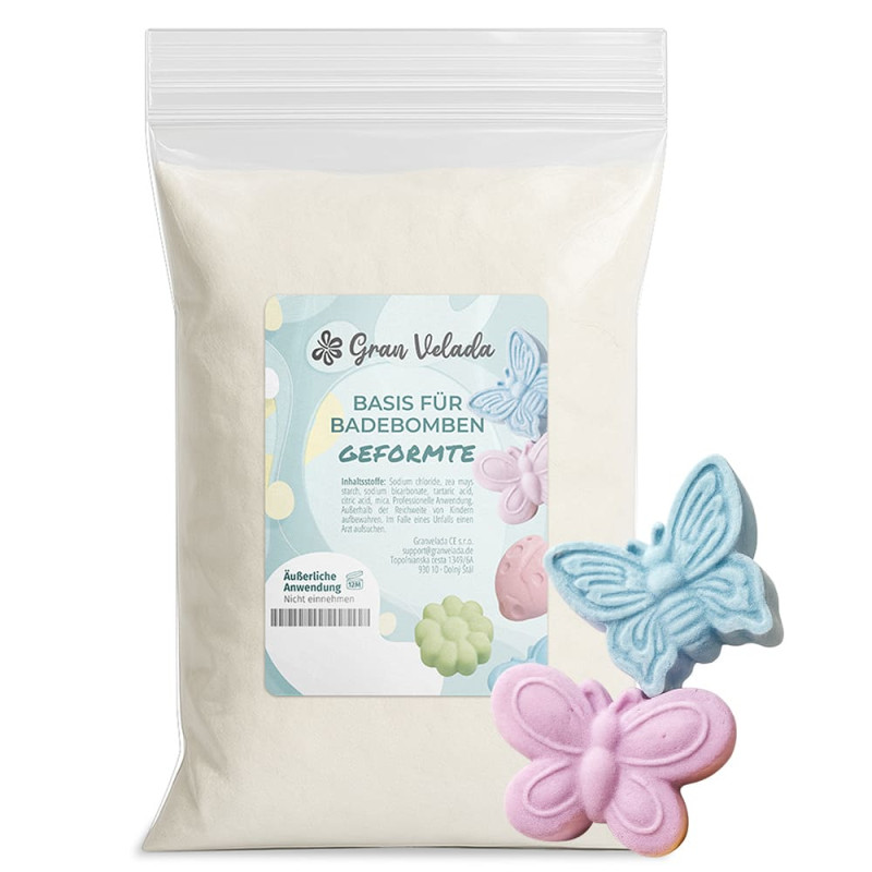 Basis für die Herstellung von Badebomben mit Formen, die sich leicht formen lässt, wodurch sie ideal für die Herstellung von originellen Badebomben in einer Vielzahl von Formen ist. Zusätzlich zu dieser Basis für die Herstellung von Badebomben mit Formen benötigst du 120 g Hamameliswasser, 3 g der aromatischen Essenz, die du am liebsten magst, einige Tropfen flüssige Badebombenfarbe (berechnet auf das Gewicht des Wassers) und eine Form. Verpasse nicht die Details, wie du Badebomben mit Formen herstellen kannst! Es ist ganz einfach und man kann sie nach Belieben personalisieren. Diese Basis enthält die gleichen Zutaten wie die selbstgemachte Badebombenbasis. Kaufe diese Basis im Großhandel mit großen Rabatten, indem Sie auf diesen Link klicken.