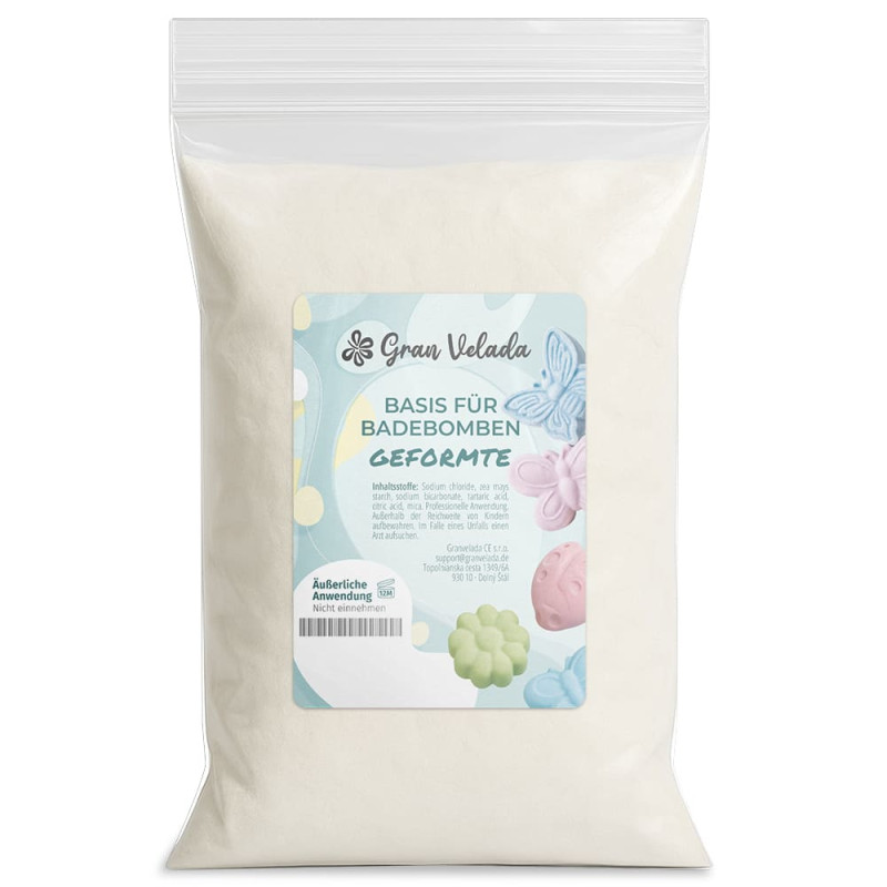 Die Herstellung von geformten Badebomben ist mit dieser Basis von Gran Velada einfach. Sie hat den Vorteil, dass sie leicht zu formen ist. Deshalb kann man jede beliebige Form von Badebomben herstellen: Herz, Kugel, eiförmig...