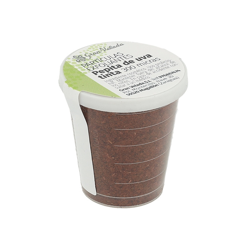 Die 300 Mikron gemahlenen Traubenkernpartikel sind ideal für die Herstellung Ihrer eigenen Peelings. In diesem Fall handelt es sich um rote Traubenkerne, die aufgrund ihrer Größe (300 Mikrometer) sowohl zur Herstellung von Gesichts- als auch von Körperpeelings verwendet werden können.