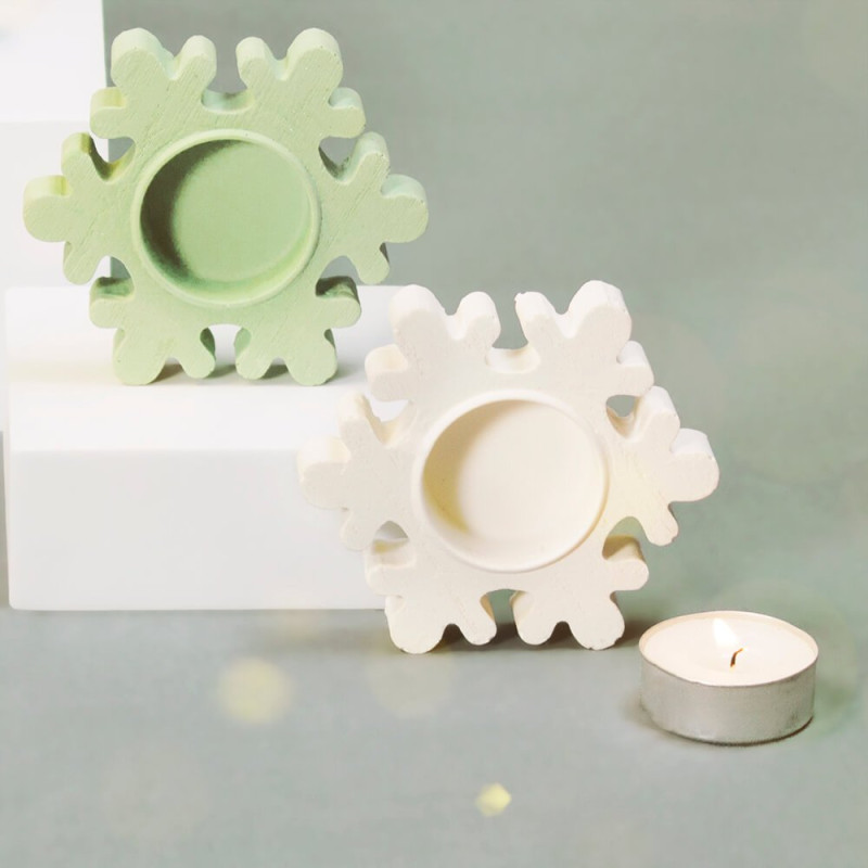 Lass die Form vollständig trocknen, bevor du sie entformst, um Risse zu vermeiden. Zum Schluss setze ein Teelicht in den Kerzenhalter und zünde es an – für eine gemütliche, festliche Stimmung!