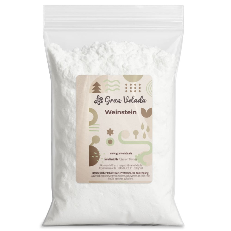 Die Weinsteincreme, die Sie in Gran Velada kaufen können, ist ein kosmetischer Inhaltsstoff von hoher Reinheit, der alle internationalen Qualitätsvorschriften der verschiedenen Arzneibücher erfüllt: Amerikanisches Arzneibuch (U.S.P.), Britisches Arzneibuch (B.P.) und Europäisches Arzneibuch (EP). Es wird hauptsächlich als Zutat bei der Herstellung von Badebomben verwendet.