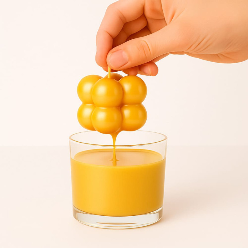 Kerzenlack Metallic handle yellow ist perfekt, um Ihren Kreationen einen neuen Look zu verleihen. Mit einem einzigen Tauchgang können Sie eine weiße Kerze in ein dekoratives Stück mit Neon-Finish verwandeln. Seine spezielle Formel beeinträchtigt weder die Verbrennung noch erzeugt sie Gerüche, was es zu einem sicheren und wirksamen Produkt für die Kerzendekoration macht.
