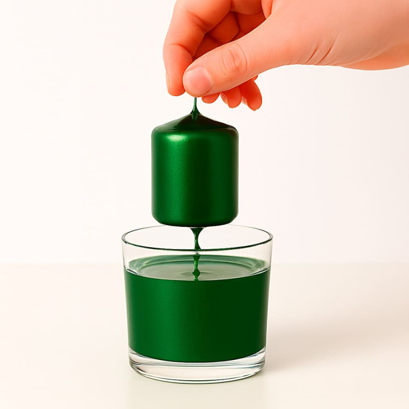 Metallic-grüner Lack für Kerzen, mit dem Sie Ihren Kerzen eine schöne Farbe und einen Metallic-Effekt verleihen. Dieser Lack lässt sich leicht auftragen und schnell trocknen und mit ihm können Sie das Aussehen Ihrer Kerzen schnell und einfach verändern. Wir empfehlen Ihnen, den Lack mit der Tauchtechnik aufzutragen, wie unten beschrieben. Bei der Verwendung des Lacks für Kerzen ist es ratsam, dass die Basiskerze helle Farben hat und die Oberfläche gut gereinigt ist. Wenn sie dunkel sind, müssen mehrere Tauchbäder hergestellt werden, damit das Finish perfekt ist. Es ist ein Qualitätslack , der die Verbrennung der Kerze nicht beeinträchtigt. Darüber hinaus erzeugt es bei der Verbrennung keinen Geruch. Vor Gebrauch umrühren, wie ausführlicher erläutert.