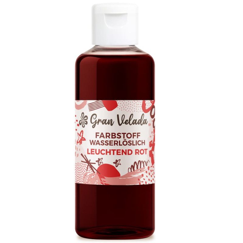 Leuchtend roter Flüssigfarbstoff für Glycerinseife - sehr einfach und bequem in der Anwendung! Füge einfach ein paar Tropfen dieses flüssigen Farbstoffs in die aufgelöste Seifenbasis hinzu und du wirst spektakuläre und sehr fantasievolle Kreationen erhalten! Dieser flüssiger Farbstoff, den du bei Gran Velada kaufen kannst, ist wasserlöslich und wird gebrauchsfertig verkauft. Du kannst damit helle bis kräftige Farbtöne erzielen, je nachdem, wie viel Farbstoff du hinzufügst und welche Glycerinseifenbasis du verwendest. Entdecke die gesamte Palette der Gran Velada Glycerinseifenfarben! Klare oder transparente Grundstoffe führen zu leuchtenden und kräftigen Farben; weiße oder undurchsichtige Grundstoffe führen zu Pastelltönen. Wenn du leuchtende Farben willst und deine Seifen undurchsichtig sein sollen, füge einen Tropfen Opak-Farbstoff hinzu - entdecke die gesamte Palette der Gran Velada Glycerin Seifenfarbstoffe! Dieser Farbstoff ist rein und unverfälscht, ideal für die Herstellung eigener Mischungen.