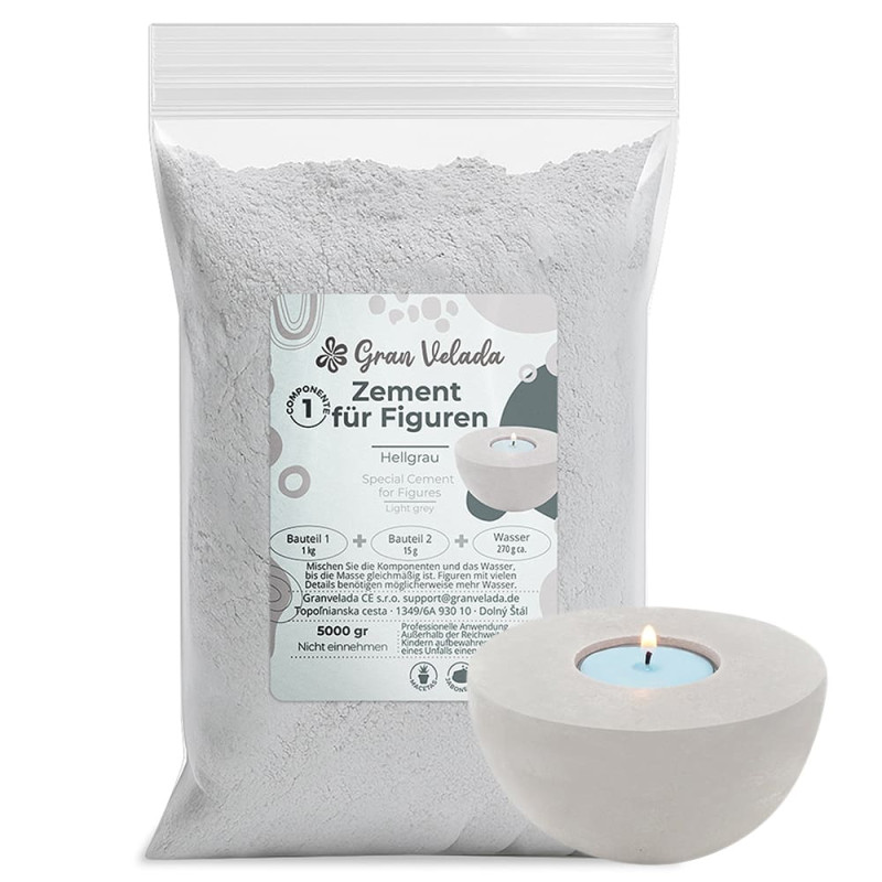 Es ist ein hellgrauer Zement mit einer feineren Körnung, der aus zwei Komponenten besteht, die diese exklusive Formel perfekt für das Handwerk machen. Es ist perfekt für die Herstellung von originellen Figuren und Dekorationsgegenständen für Ihr Zuhause.