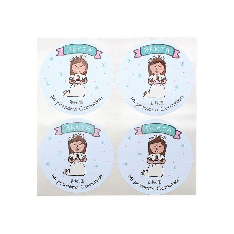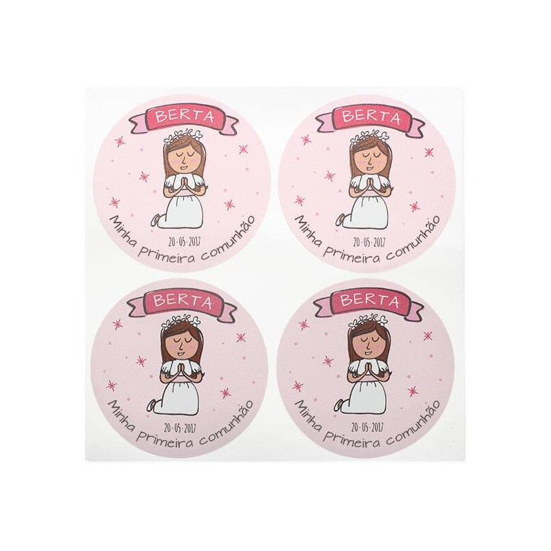 Personalisierte runde Kommunionaufkleber - Mädchen