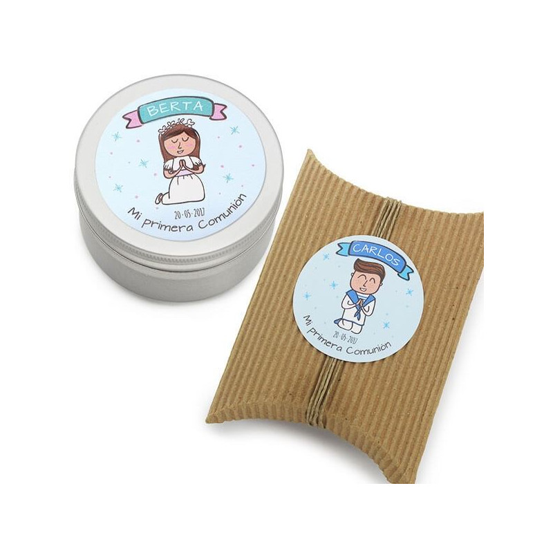 Diese personalisierten Etiketten für die Kommunion sind ideal für die Dekoration der Geschenke, die du deinen Gästen überreichst. Auf diese Weise erhältst du ein einzigartiges und besonderes Geschenk. Die Personalisierung ist sehr einfach. Du musst nur den Namen und das Datum der Feier angeben. Diese Angaben sollten in den Kommentaren der Bestellung erscheinen.