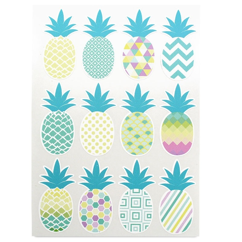 Diese Ananas-Aufkleber sind in vier Modellen mit verschiedenen Farben und Aufdrucken erhältlich. Wähle einfach das Modell aus, das dir am besten gefällt und bestelle es online. Sie werden von sehr sommerlichen Farben dominiert: Türkis, Aquagrün, Senf, Lachs, Rosa...