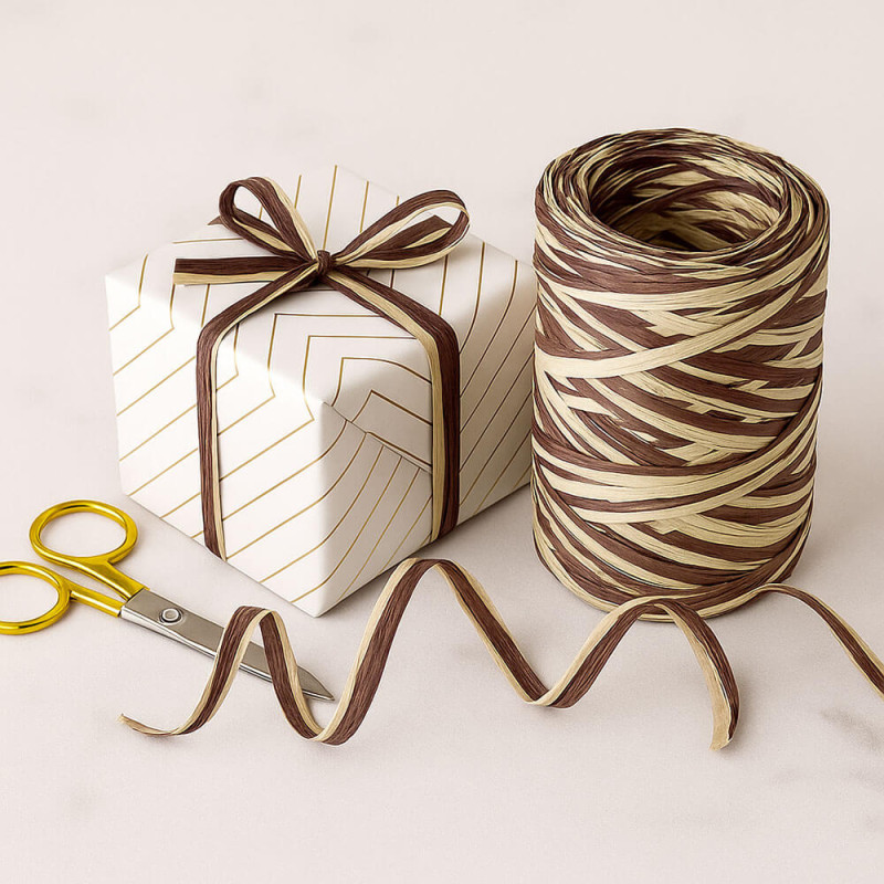 Natürliches braunes zweifarbiges Bastband, um Ihre Geschenke, Gästedetails, handgefertigte Ausarbeitungen, Floristen und alles, was Sie sich vorstellen können, zu dekorieren und zu personalisieren. Das Bastband in zwei Farben, braun und natur, ist ideal für die Herstellung von Schleifen und die Dekoration der Verpackung Ihrer Kreationen und Gästedetails mit einer rustikalen, einfachen und originellen Atmosphäre. Von Gran Velada stellen wir Ihnen zweifarbiges Band aus braun-natürlichem Bast in Rollen unterschiedlicher Größe zur Verfügung: 10, 200 oder 400 Meter. Sie müssen nur die Länge auswählen, die Ihren Bedürfnissen am besten entspricht, und Ihren Kauf bearbeiten. Mit dem naturbraunen Bastband verleihen Sie jeder Ihrer Verpackungen einen Hauch von Qualität, Professionalität und vor allem Originalität.