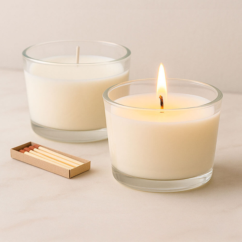 Bei uns kannst du Gläser aus Glas kaufen – in diesem Fall werden sie leer verkauft. Dieses Modell besteht aus dickem Glas, was es besonders hitzebeständig macht – ein entscheidender Vorteil bei der Herstellung von Kerzen im Glas. Außerdem kannst du sie wiederverwenden oder recyceln. Diese Gläser eignen sich ideal für: