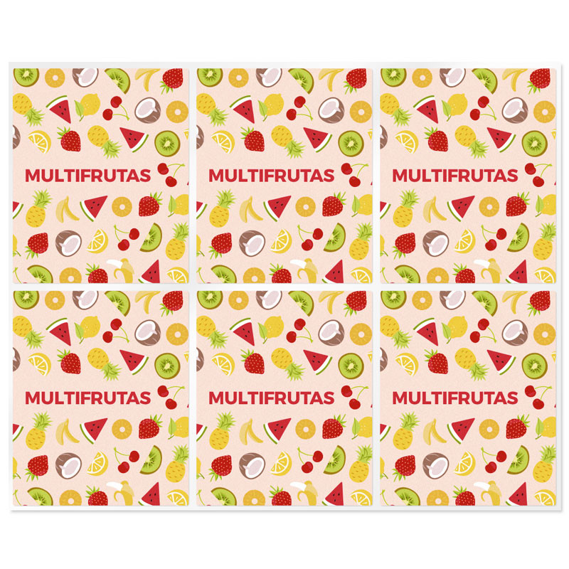 Blister mit 6 Aufklebern für Multifruit-Lippenstifte, 4,5x5,5cm. Sie eignen sich perfekt zum Dekorieren von Lippenstiftbehältern. Die perfekte Ergänzung zu Ihren Ausarbeitungen! Dieses Modell wurde speziell für die Lippenstifte entwickelt, die Sie mit Multifruit-Aroma herstellen. Sie haben ein originelles und lustiges Design und sind exklusiv in unserem Online-Shop erhältlich. Die Aufkleber, die Sie in Gran Velada kaufen können, zeichnen sich durch ihre Widerstandsfähigkeit und Qualität aus. Sie haften perfekt auf verschiedenen Oberflächen (Pappe, Papier, Kunststoff, Glas, Aluminium...) und sind wasserabweisend. Holen Sie sich diese Aufkleber und erhalten Sie eine perfekte Verpackung für Ihre Lippenstifte!