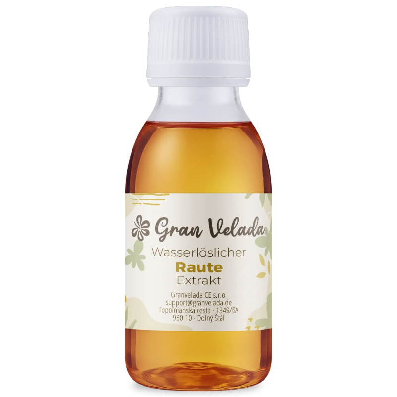 Im Gran Velada Online-Shop können Sie wasserlöslichen Weinrauten-Extrakt für Ihre DIY-Kosmetik kaufen. Erhältlich in verschiedenen Formaten, mit schneller Lieferung und Ratschlägen, die dir bei deinen Rezepturen helfen.