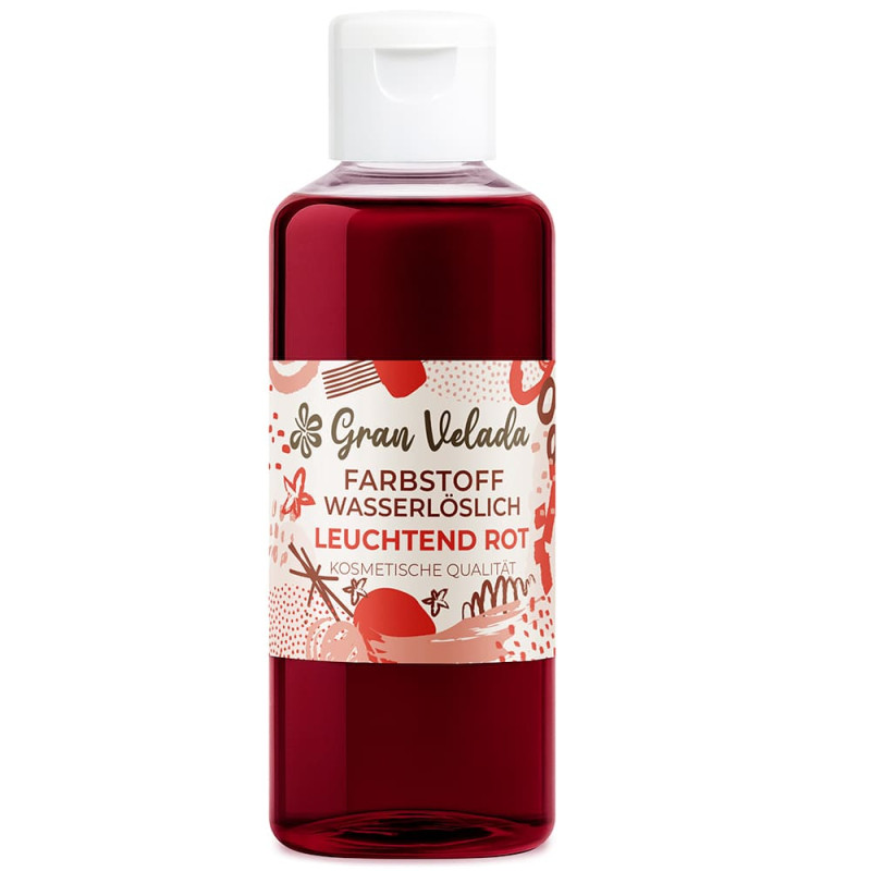 Leuchtend roter Flüssigfarbstoff für Glycerinseife - sehr einfach und bequem in der Anwendung! Füge einfach ein paar Tropfen dieses flüssigen Farbstoffs in die aufgelöste Seifenbasis hinzu und du wirst spektakuläre und sehr fantasievolle Kreationen erhalten! Dieser flüssiger Farbstoff, den du bei Gran Velada kaufen kannst, ist wasserlöslich und wird gebrauchsfertig verkauft. Du kannst damit helle bis kräftige Farbtöne erzielen, je nachdem, wie viel Farbstoff du hinzufügst und welche Glycerinseifenbasis du verwendest. Entdecke die gesamte Palette der Gran Velada Glycerinseifenfarben! Klare oder transparente Grundstoffe führen zu leuchtenden und kräftigen Farben; weiße oder undurchsichtige Grundstoffe führen zu Pastelltönen. Wenn du leuchtende Farben willst und deine Seifen undurchsichtig sein sollen, füge einen Tropfen Opak-Farbstoff hinzu - entdecke die gesamte Palette der Gran Velada Glycerin Seifenfarbstoffe! Dieser Farbstoff ist rein und unverfälscht, ideal für die Herstellung eigener Mischungen.