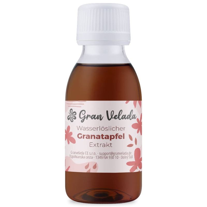 In Gran Velada können Sie Granatapfelextrakt kaufen, ein Mazerat aus den Früchten (Punica granatum L.) in Wasser und Glycerin zu gleichen Teilen. Es zeichnet sich durch seinen hohen Gehalt an Vitamin A, B und C sowie Kalium, Phosphor, Magnesium, Kalzium und Natrium aus.
