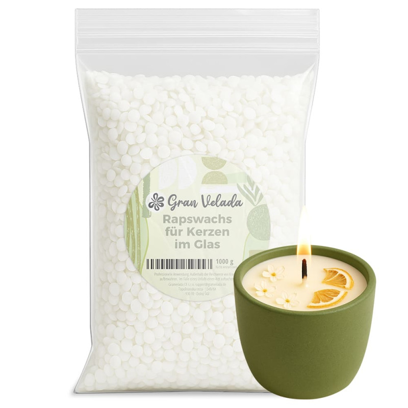 Rapswachs, das Du bei Gran Velada kaufen kannst, ist ein 100% pflanzliches Wachs, das durch Härtung von Rapsöl gewonnen und zur Herstellung von Kerzen verwendet wird. Es wird in Kügelchen verkauft und zeichnet sich durch seine seidige Textur und seinen neutralen Duft aus. Dieses Rapswachs enthält keine Pestizide, Herbizide oder GVO. Bis zu 4 % Aroma-Essenz können hinzugefügt werden, und die optimale Fülltemperatur liegt bei 50 °C.